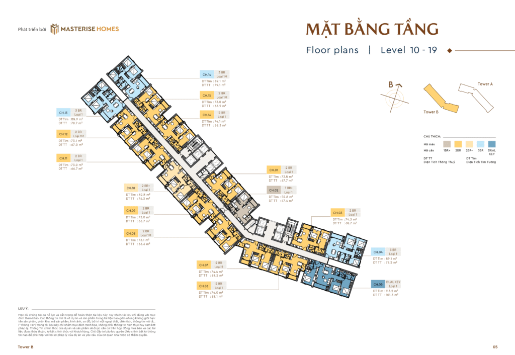 • 3PN: 78,6 – 80m² (Diện tích thông thủy)